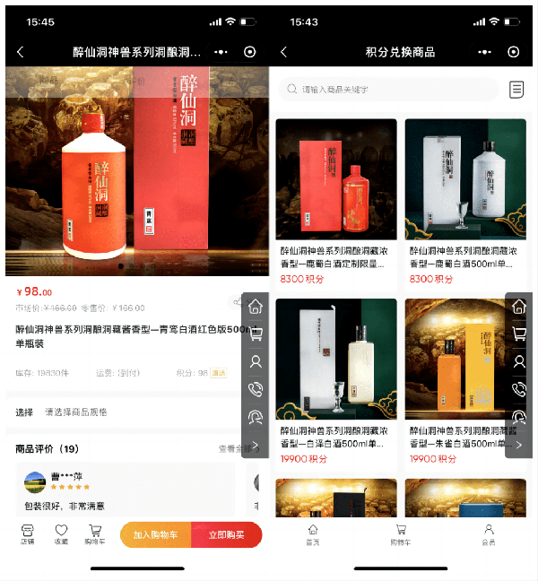 琼台酒业把低客单、复购高的商品,展示在积分商城,通过消费赠积分,消费者积累积分后兑换指定商品。