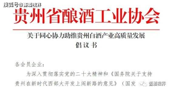 2月20日,贵州省酿酒工业协会发布《关于同心协力助推贵州白酒产业高质量发展倡议书》,发起八项倡议,引起强烈关注。一是要共同维护贵州白酒声誉,恪守企业诚信经营承诺;二是要守牢白酒产品质量安全底线;三是坚持绿色和谐发展,全面助力企业实现绿色循环发展;四是要融合抱团发展,共护诚信声誉,牢牢把握酱香白酒原产地和主产区的话语权;