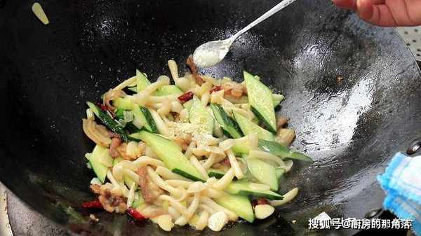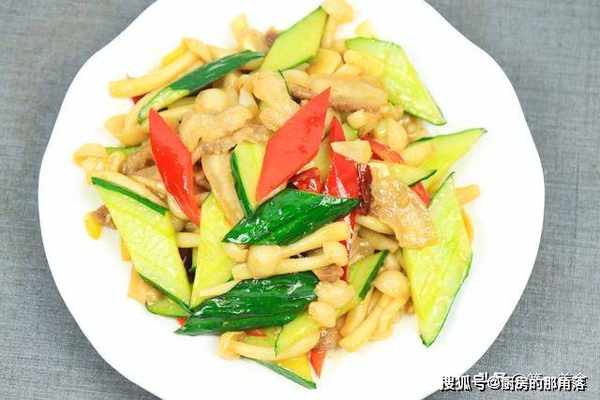 【五花肉白菇炒黄瓜】