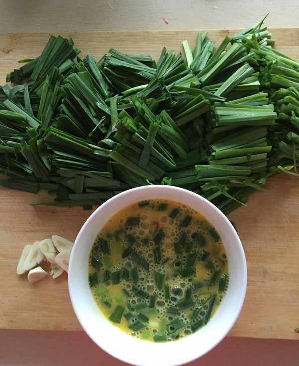 原料:韭菜、鸡蛋、葱、蒜
