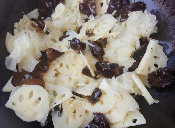 19、然后放入黑白双耳翻炒