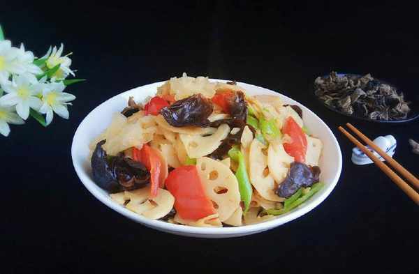 这道美食的做法简单,吃起来清脆爽口。这道菜也可叫莲藕炒双耳,双耳是指银耳和木耳,一白一黑,营养丰富又均衡。