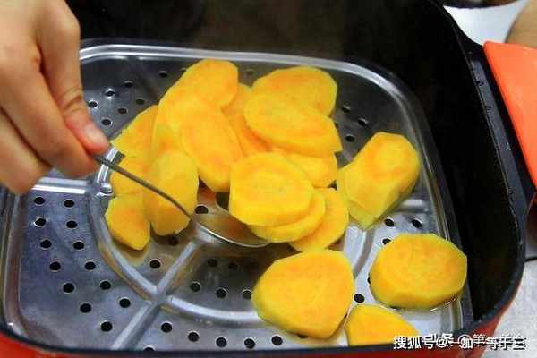把水烧开,放入红薯片进行蒸制,切的稍微薄一点,蒸的时间就短一些,大约蒸15分钟,把红薯蒸熟。