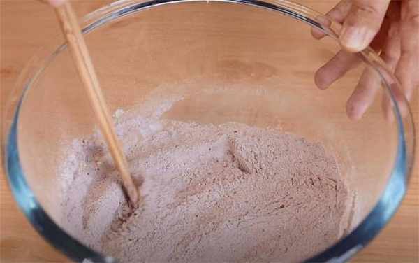 1.做饼干要用低筋面粉放上105g,可可粉放上15g,1g小苏打,再放上1g无铝泡打粉,如果想吃其他口味的朋友,可以把可可粉换成抹茶粉,或者其他的果蔬粉,这样搅拌均匀就可以了。