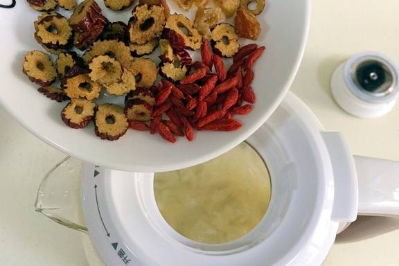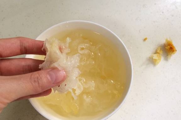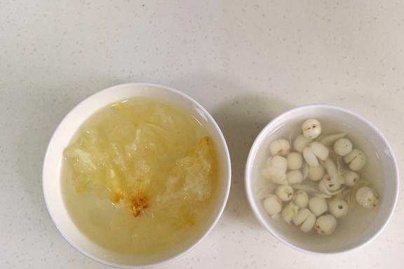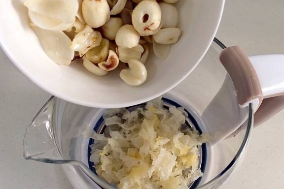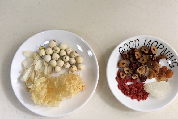 【所需配料】:桂圆干、百合、银耳