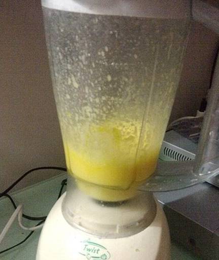 2、鸡蛋三只打入榨汁机加适量白糖开动电源搅打一分钟