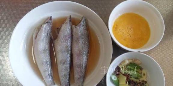 食材:南极鱼3条400g,鸡蛋1个,大葱7小段,姜3片,大蒜3瓣,八角2个,花椒20余粒,米醋3勺,料酒4勺,二锅头白酒少许,味极鲜酱油1勺,白糖半勺,盐适量,植物油适量