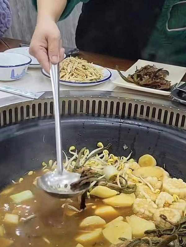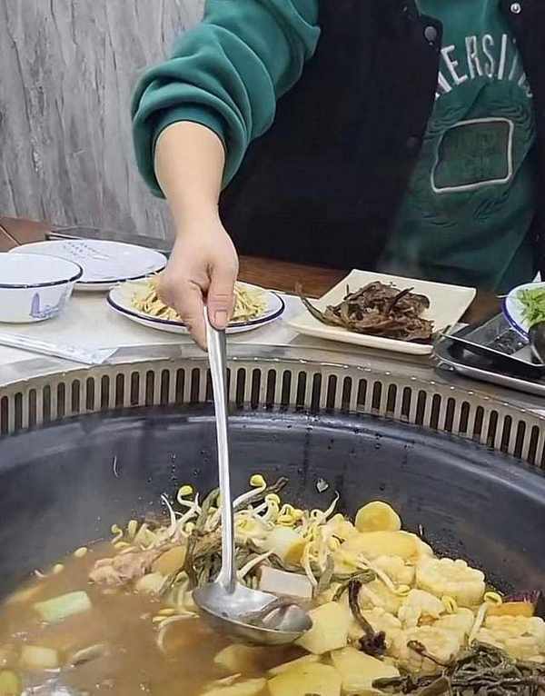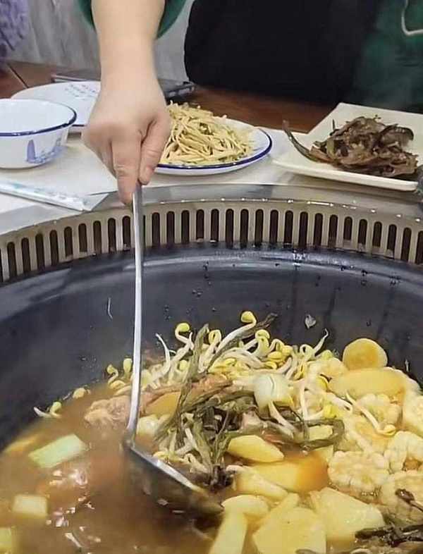 几个朋友一块有说有笑着吃着大餐,大家也都知道铁锅炖是需要把各种蔬菜放在里面边炖边吃,几个人吃的正开心的时候,老板拿着一大铁勺过来了,也没给客人说清楚,直接把饭勺伸进了锅里,这让几位客人都一头雾水,问起原因,老板告诉女士“这个蘑菇上错了,你们没有点这道菜,所以得捞出来,这都是有成本的,还能再给别的桌用。”