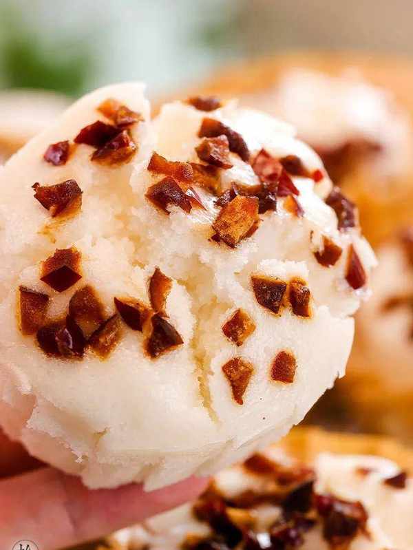 米粉点缀红枣碎,外型更柔软,口感更丰富,老少皆宜。除了红枣碎,还可以填入其他自己喜欢的干果,比如蔓越莓干、葡萄干等,爱面食的朋友一定要收藏起来。