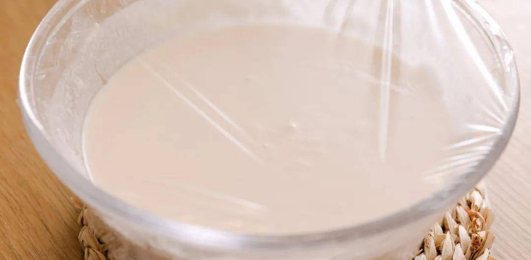 3.盖上保鲜膜,发酵至两倍大。(Tips:可以第一晚冷藏发酵,第二天就可以直接做)