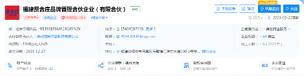 新京报消息,2月22日,记者从国家企业信用信息公示系统了解到,福建贤合庄品牌管理合伙企业(有限合伙)(以下简称“贤合庄合伙企业”)被福州经济技术开发区市场监督管理局列入经营异常名录,原因是通过登记的住所或者经营场所无法联系。