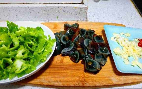 准备材料:青椒4-5个,皮蛋2-3个,小米椒,大蒜(食材是人数自己添加)喜欢吃辣的可以买一些特辣的杭椒