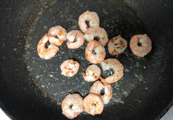 5、炒锅烧热后倒入适量花生油,油量比平时炒菜多一些,油热后放入虾仁煸炒,炒至虾仁变红后盛出备用;
