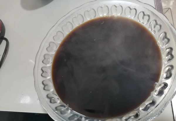 步骤三、冰糖煮开后,下入酱油煮开,加入香醋煮开,关火,将煮好的料汁水倒入汤盆里冷却。