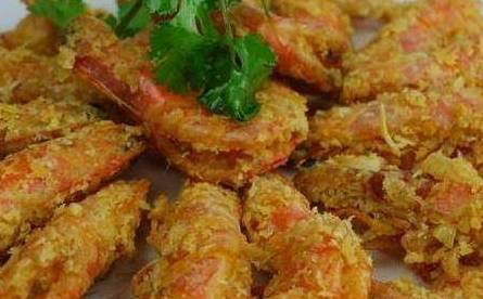 2.锅中加入油烧至8成热,倒入虾炸2分钟左右捞出;将锅中油控干,放入压碎的咸蛋黄炒至起沙,倒入炸好的虾翻炒至挂上咸蛋黄即可。