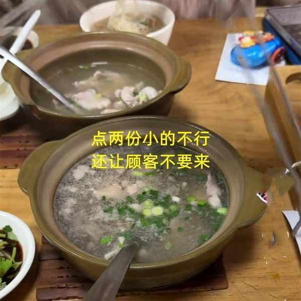一碗小份的汤卖15元,两人就点了2份小份,老板要她们直接点大份30元。