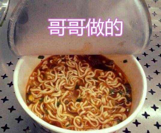 图中的这个就是哥哥给自己做的面了,当听说自己饿了以后,他又不会去做一些美食,但是对于泡面这种简单的事情也是可以做到的,直接就撕开上面的包装,然后倒入了一些热水,端到了你的面前,虽然有些简陋,但是也是满满的爱心。