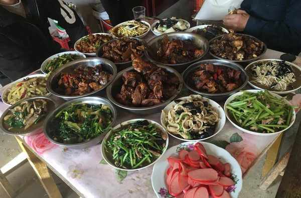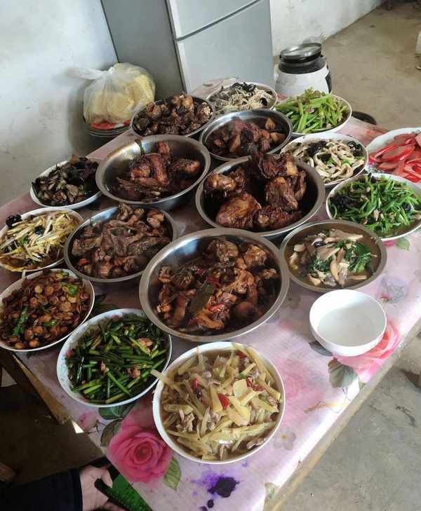 在安徽农村过年,婆家中午吃年夜饭,摆满了一大桌菜。