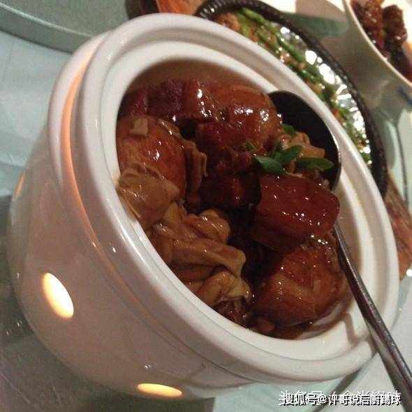 图为陈年花雕焖乳鸽,最贵的一道菜,店里的招牌菜,乳鸽先过油炸,用蒜末、姜片、葱段爆香,放入高汤和花雕酒加盖焖熟,大火收汁,如果领导没在,我能吃一半多。