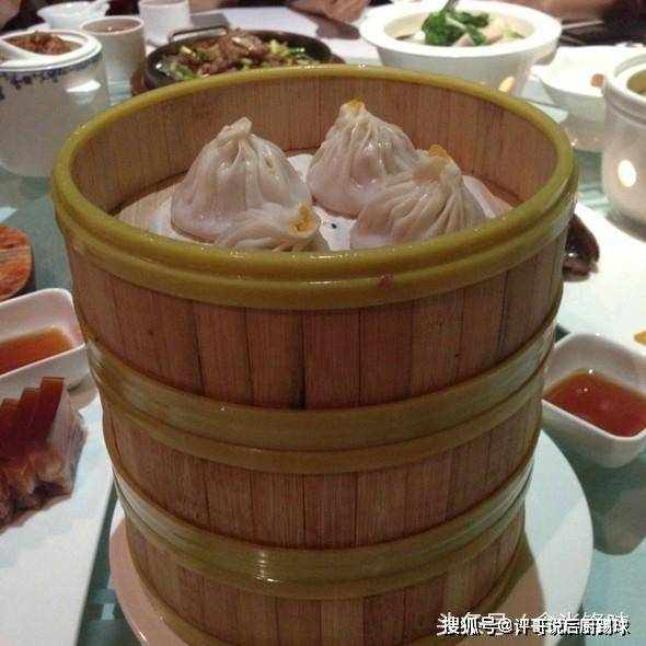 图为蟹黄小笼汤包,一般出现在婚宴上比较多,没想到在这里也能吃到,包子底下垫着一块蒸笼布,把包子插入碟中,轻轻的咬破包子皮,把其中的汤汁喝掉,然后在吃空皮,动作要一气呵成。