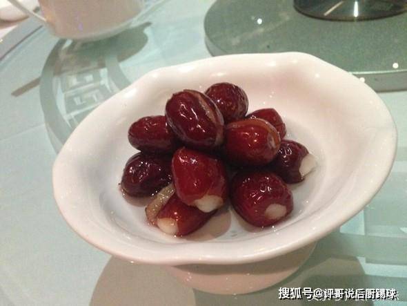 图为糯米红枣,里面的枣核都已经去掉,加入淀粉蒸熟,原来经常用红枣来煮粥,这个吃法真是别有一番风味。