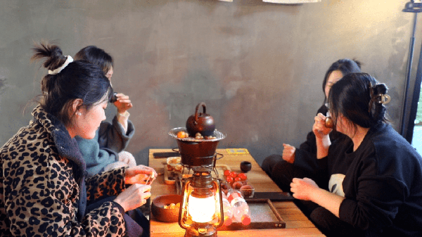 茶馆顾客 马女士:在朋友圈看到朋友们都来打卡,就想来看一看。来了就吃点东西,喝喝茶,聊聊天,感觉很放松,一下午也没有说玩手机什么的,就感觉还挺好的。