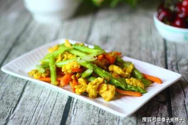 鸡蛋,芦笋,胡萝卜,蒜,盐,油,胡椒粉。