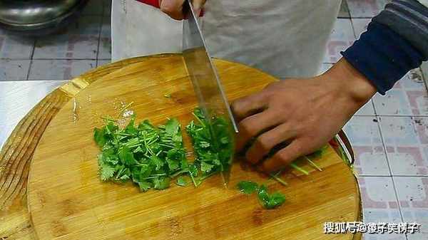 香菜一段,切上几刀,装在盘中。