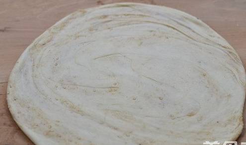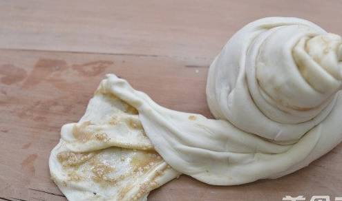 从一头卷起,边抻边卷,这样饼会更加的薄