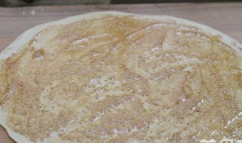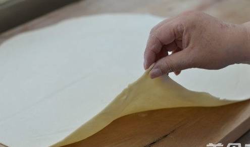 擀成薄面片,不能太厚也不能太薄,大概2毫米左右,厚了层次不分明,薄了包上油酥后容易烂掉