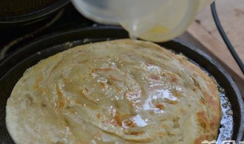 预热好的电饼铛中倒入适量油,想要酥脆就多加油