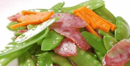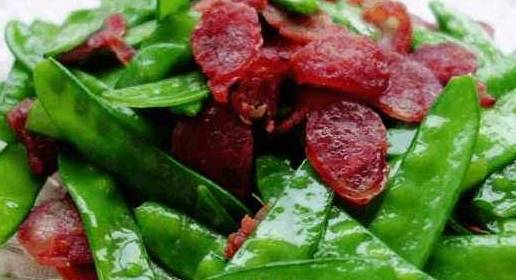 很多人家逢年过节的时候都喜欢腌制一些腊肠来食用,腌制好的腊肠不仅非常的鲜嫩,而且入口也是完全不油腻。不过光是吃腊肠总归是有些寡淡的,今天小编要给大家介绍的就是用腊肠和荷兰豆搭配在一起,炒制出来也是很美味的哦。