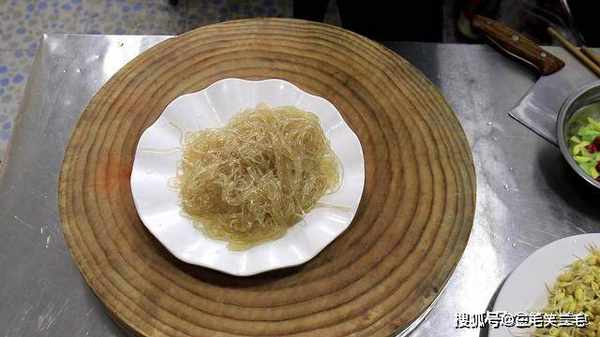 3.下面,我们把泡软的粉条捞出,控干水分放入盘中备用,所有食材准备好之后我们开始烹饪。