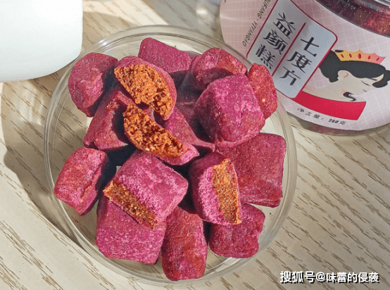 单从外表来看,粉粉的七度方益颜糕就让人很有食欲,火龙果粉的清香让人忍不住咬上一口,呈现出的却是红豆和红枣融合的自然清甜,并且低温烘焙出的口感很有嚼劲,解馋效果非常不错。