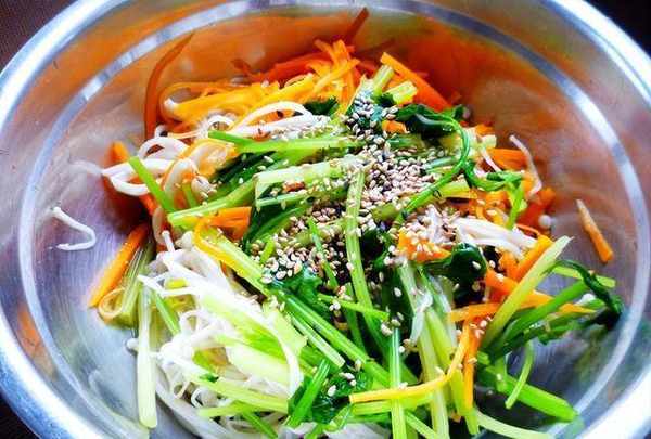 4)加入适量盐和香油,拌匀即可。