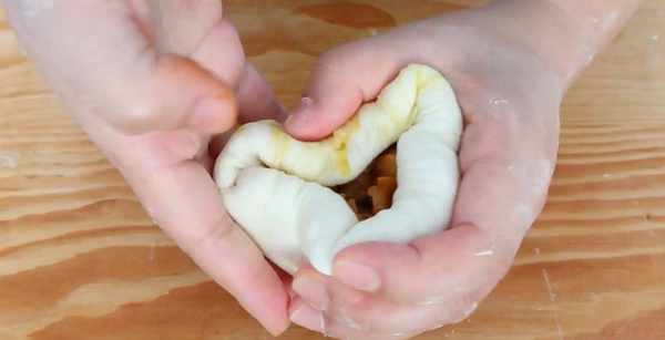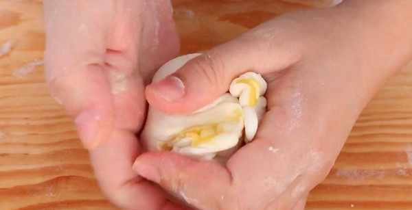 17.往里面放入适量馅料,再把它包起来,开口处要封严实一点。