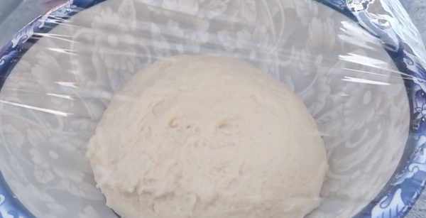 3.下手揉成偏软的面团。盖上保鲜膜,发酵至两倍大。
