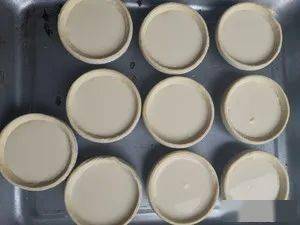 蛋挞皮解冻一会,倒入蛋液,九分满。应该是对12个蛋挞皮正好,因为我喝了两口牛奶,所以这次只能做10个了???