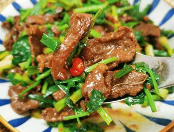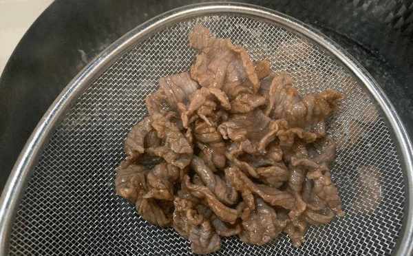 腌制后有两种选择,一种是炒的,一种是煮的。如果是煎,记得把牛肉放在热锅里用冷油煎一下,以免牛肉粘锅。方法很简单。炒锅烧热,烧热后倒入食用油,大火烧热锅,油热后倒出,再倒入冷油,待油温50%热时,倒入牛肉翻炒-快炒。经过这种处理,完全不粘锅,也不会出现退浆现象。它柔软、柔软、芳香。