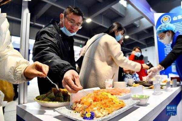 当日,2023中国(日照)海洋食品预制菜发展大会在山东日照举行。来自各地的海洋食品预制菜亮相预制菜博览会。