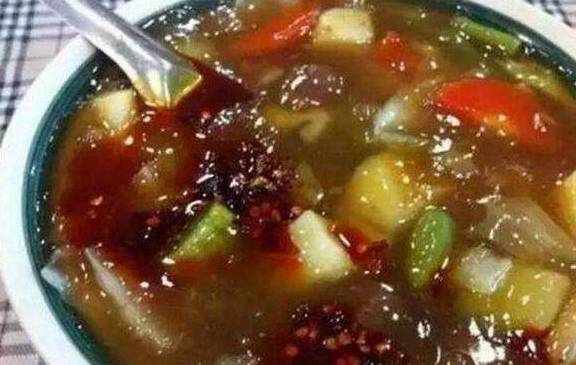 煮牛肉时放凉现已成了肉冻的胶体状物,也即是老汤,是小车牛肉里最入味儿的,鲜美无比,此汤乃是做牛肉面的上品。
