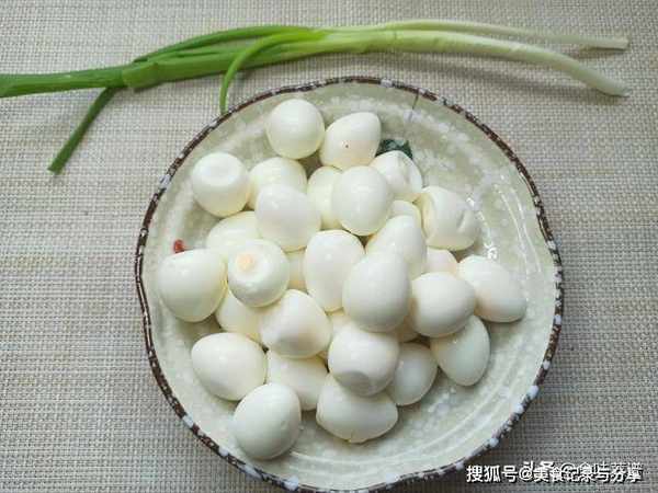 1、锅内烧水,下入鹌鹑蛋,小火煮上8分钟左右,捞出浸入凉水中,剥掉外壳。