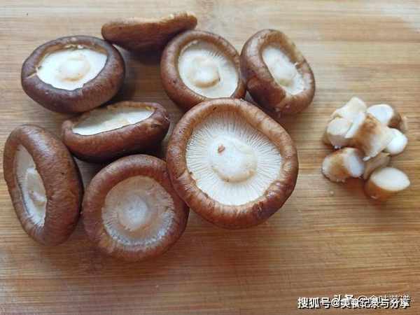 1、准备新鲜的香菇10朵左右,提前泡发,清洗干净,用剪刀去掉香菇蒂,剪下来别扔掉,等下还用得到。
