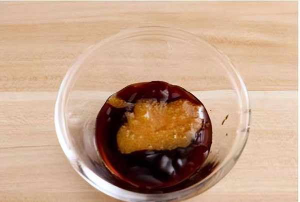 1、小葱洗净切段,姜洗净切片,蒜切末;在蒜泥中压入一些蒜末,放入碗中,加入叉烧酱、蜂蜜和生抽,搅拌均匀成酱汁。