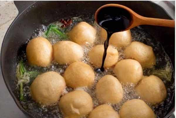 4.加入老抽、盐和糖,小火慢炖,不时用锅铲翻动。