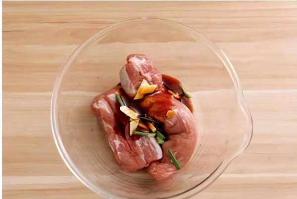 3、将梅花肉用手抓起揉匀,装入保鲜保鲜袋,放入冰箱冷藏腌制一夜。