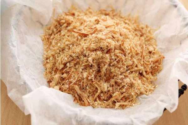 6.翻炒约30分钟至肉丝变松,即可起锅。稍微冷却后,用手将肉丝揉成蓬松的状态。