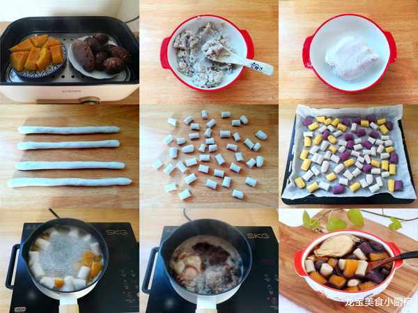 6、南瓜和紫薯分别加入木薯淀粉做芋圆。