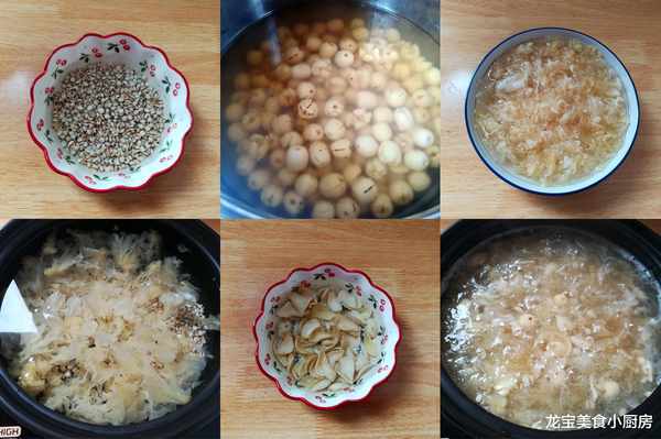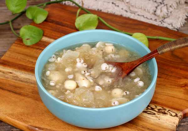银耳中含有大量的胶原蛋白,常吃银耳可以润泽肌肤。南方湿冷,春季比较潮湿。煮糖水时加入少许薏米,有祛湿之功效。莲子比较难煮,用电压力锅煮比较省时。建议多煮熟放冰箱,吃的时候再拿出来热一下。
