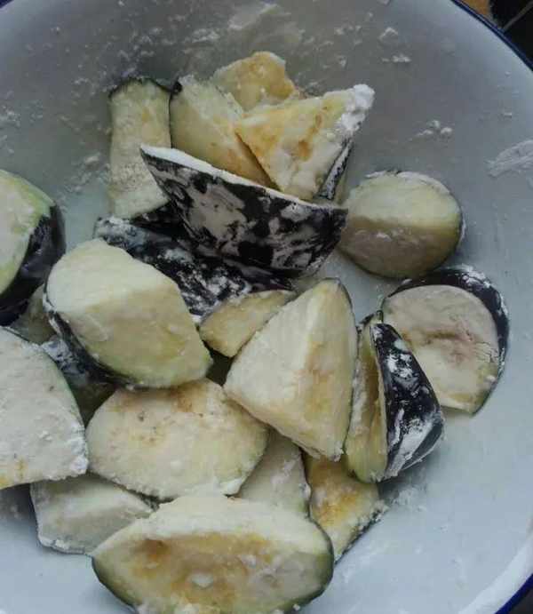 1:土豆和茄子切小块,青椒切成片,在茄子上抹一些淀粉减少吸油;
